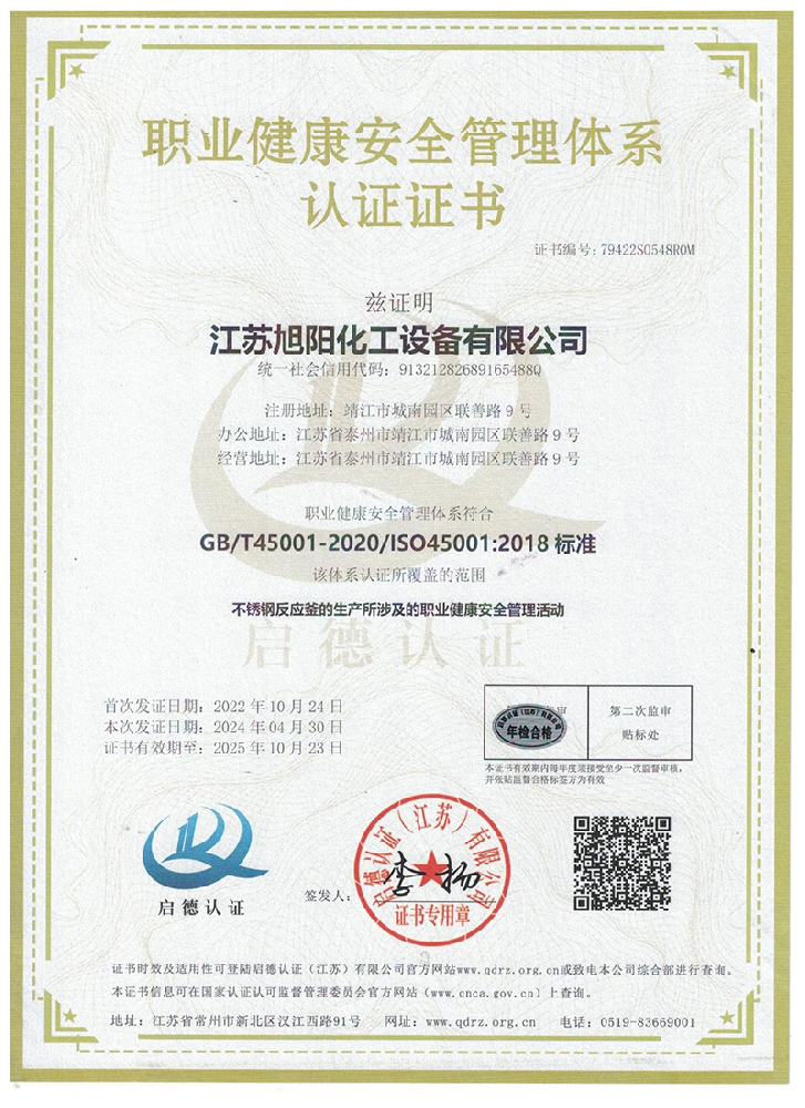 江蘇旭陽化工設(shè)備有限公司專業(yè)從事各類化工、環(huán)保、制藥、發(fā)酵、食品、新材料、鋰業(yè)等項(xiàng)目設(shè)計(jì)、制造及壓力容器的生產(chǎn)制造,是一家集研發(fā)、生產(chǎn)和進(jìn)出口貿(mào)易于一體的高科技企業(yè)。